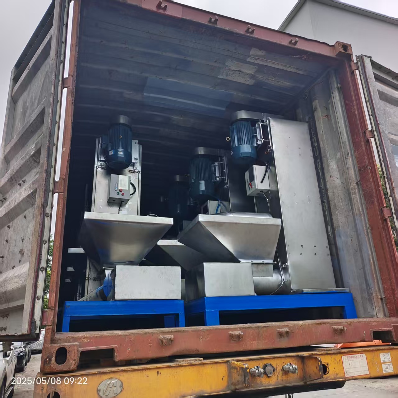 3、该款塑料米脱水机机体不锈钢材料厚度2MM,送料叶片厚度6MM,筛网厚度2MM。脱水机筛网采用半合式设计,采用镀珞螺钉锚固,清洗、换筛方便。