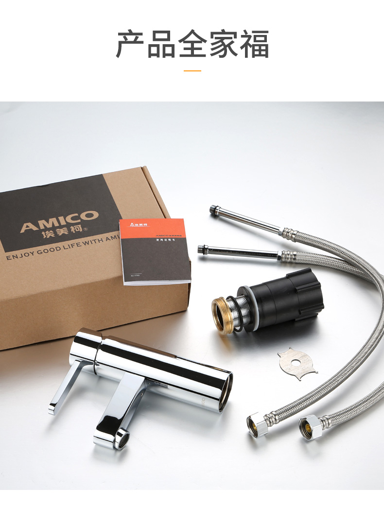 埃美柯洗脸盆龙头单柄双控面太盆冷热水酒店宾馆用龙头送软管2根