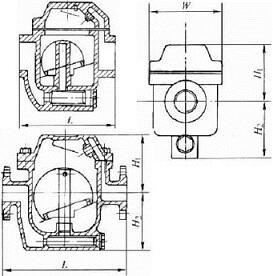 1. 半浮球式的球桶为活动部件,开头朝下,球桶既是启闭又是密封件。