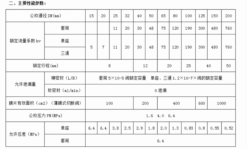 ZMAQ气动薄膜切断阀有薄膜式、活塞式两种。阀体结构有单座、套筒、双座(二位三通)三种,密封形式有填料密封和波纹管密封两种,产品公称压力等级有PN10164046四种,公称口径范围DN20200mm。适用流体温度由-60450℃。泄漏量等级为IV级或VI级。流量特性为快开。