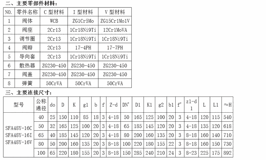 NFA48电站高温高压带散热器安全阀适用于工作温度“C"425℃;“I"500℃;“V"550℃的蒸汽等介质设备或管路上,作为超压保护装置。连接法兰标准按JB/T94系列1、系列2