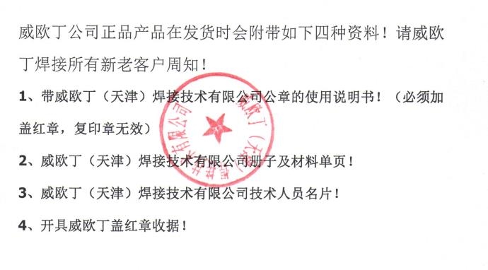 任何采购WEWELDING777铸铁焊条WEWELDING600合金钢焊条的客户,请让您的卖家出示含有"WEWELDING777(600)"商标的包装照片及含有“WEWELDING777(600)”铭牌的焊条照片!