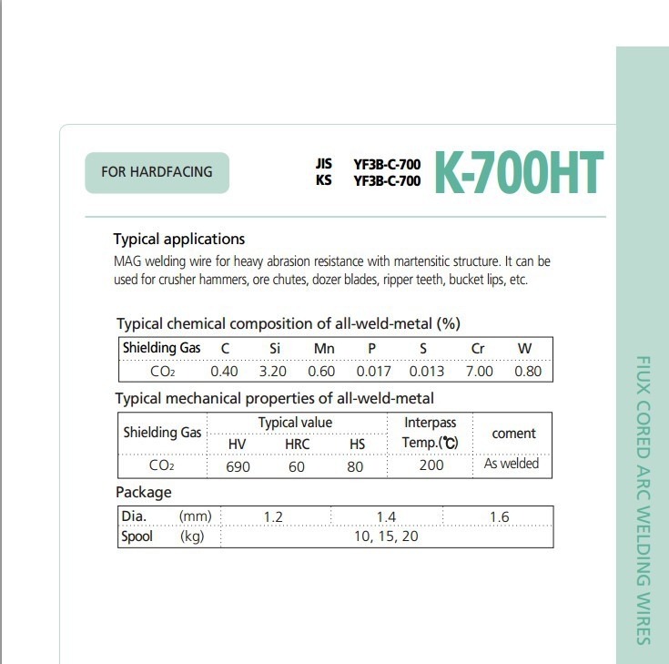 韩国高丽 K-700HT 耐磨药芯焊丝供货商