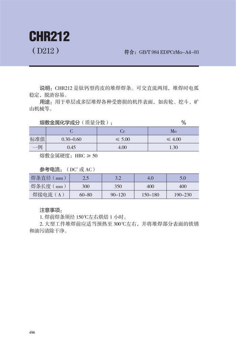 大西洋 D212 耐磨堆焊焊条 CHR212电焊条焊条牌号 药皮类型 电流种类 主要用途