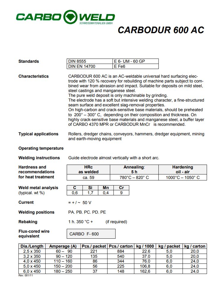 德国卡博威CARBODUR 600 AC耐磨堆焊焊条