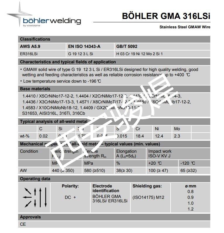 奥钢联BOHLER GMA 316LSi伯乐不锈钢气保焊丝