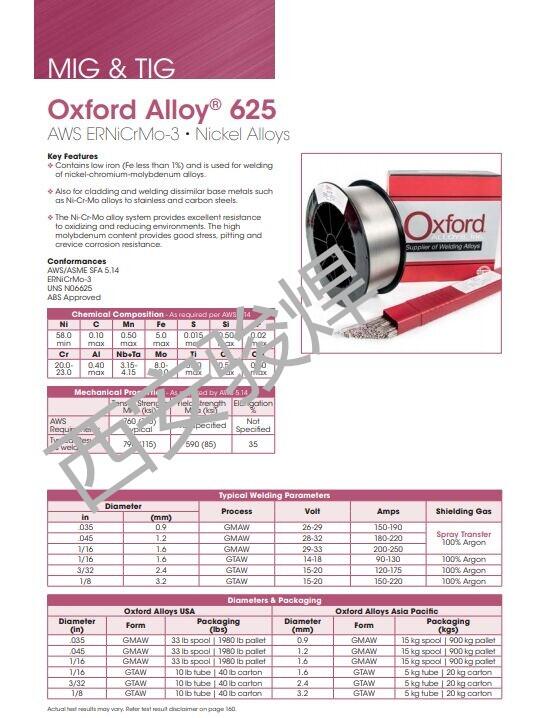 Oxford ALLOY 625美国牛津镍基合金焊丝ERNiCrMo-3焊丝