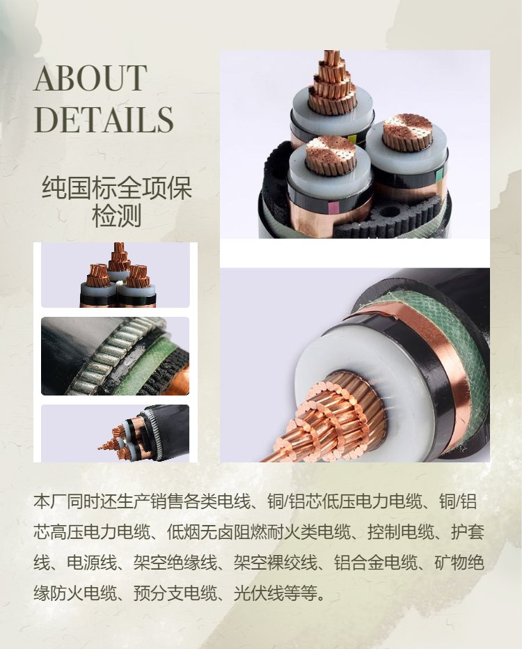 国网电缆集团,是一家多年从事生产YJV22 10KV 3*400(老牌厂家足铜足米YJV22 3芯400平方)专车全国供货大量现货)等电线电缆的老牌厂家,本厂生产的各类电线电缆均为纯国标产品,可以通过国标全项检测,实力厂家,库存大量现货,全国专车供货。