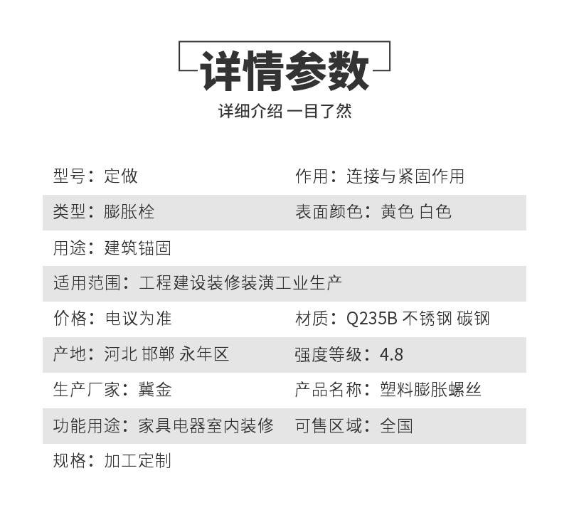 小黄鱼型塑料膨胀栓胀塞锚栓自攻螺丝钉螺栓墙塞紧固件