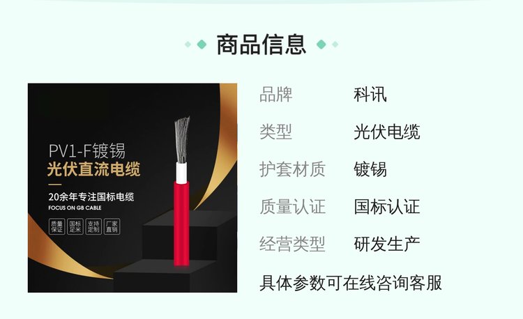 PV1-F光伏直流电缆镀锡铜丝太阳能专用线安全可靠