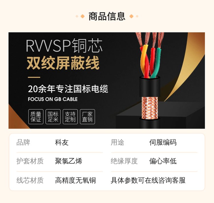 铜芯RVVSP双绞屏蔽电缆线多规格可选安全无忧