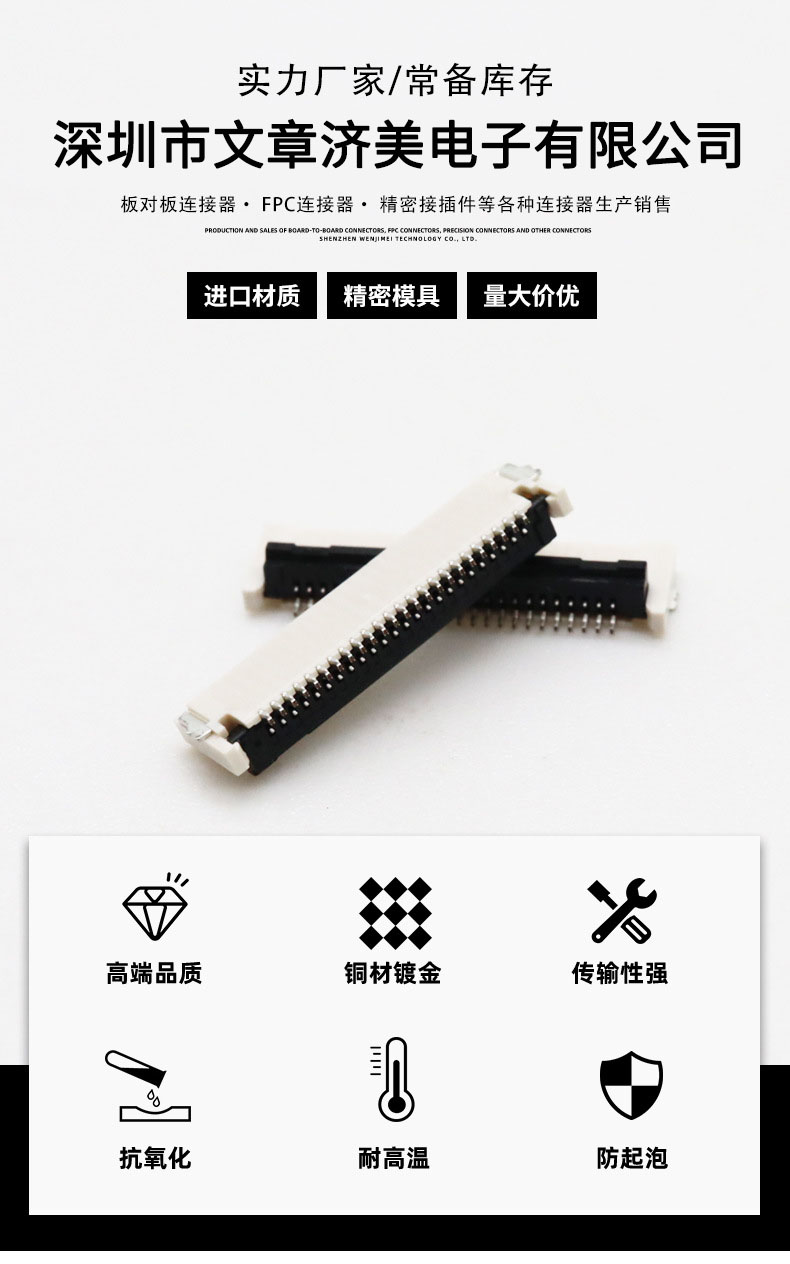 jmeconn 掀盖下接式 电脑 1.0间距2.8高 FPC/FFC连接器 包装及贮运 | 干燥,常温,遮阳 | ||