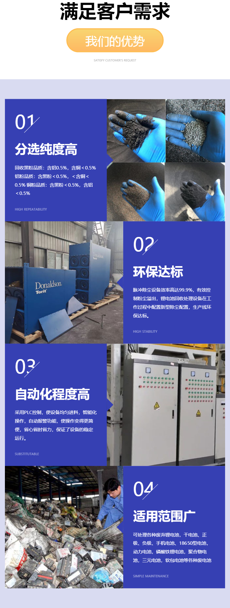 进料粒度 | 根据废旧电池尺寸定制 | ||