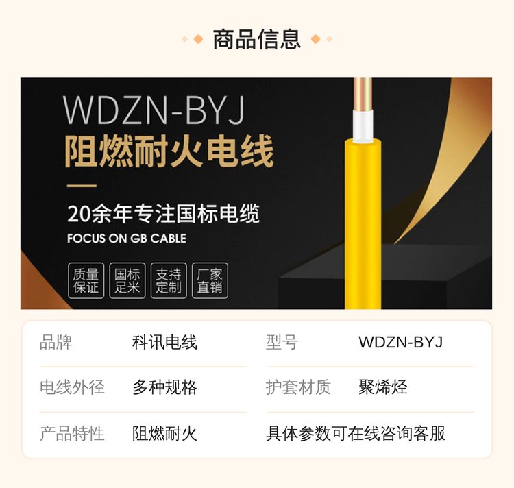 WDZN-BYJ阻燃耐火线国标保检测环保低烟无卤