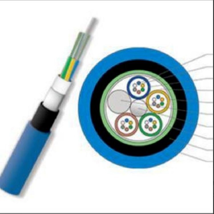 矿用阻燃光缆的结构是将单模或多模光纤套入由高模量的塑料做成的松套管中,套管内填充阻水化合 物。 缆芯的中心是一根磷化钢丝或挤上聚乙烯的钢丝绳,松套管(或填充绳及信号线)围绕中心加强芯绞合成紧凑和圆形的缆芯,缆芯内的缝隙充以阻水填充物钢-聚乙烯粘结内护套后,蓝色阻燃PVC护套成缆.