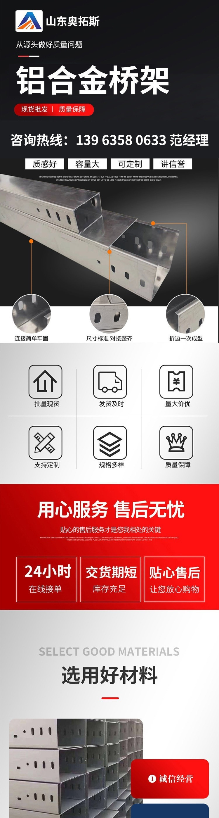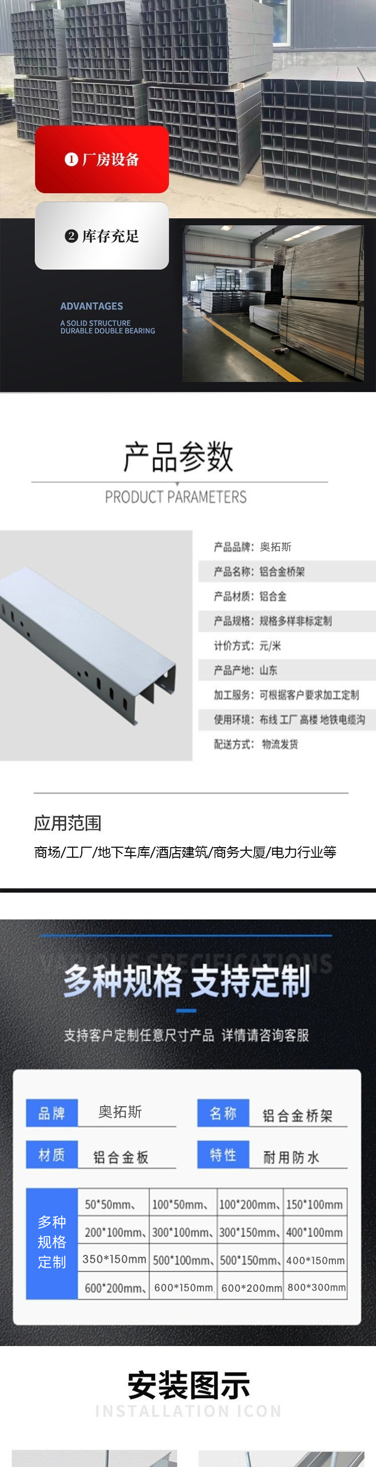铝合金电缆桥架 | 外观漂亮、结构简单、式样独特、荷载能力大、重量轻 | ||