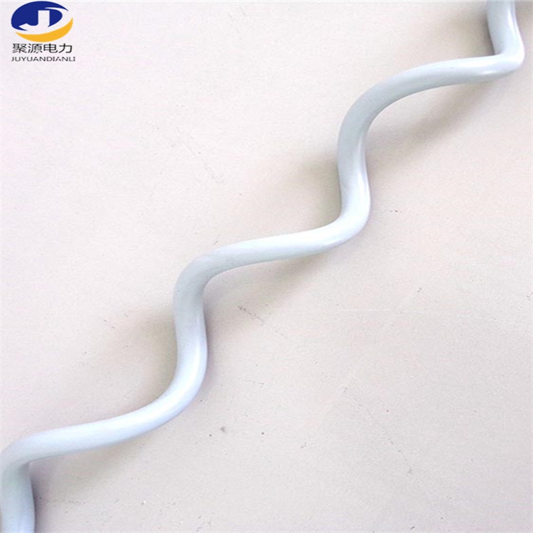 螺旋形防震鞭使用高强度、耐老化、高弹性、阻燃的固体聚氯乙烯材料制成,安装方便、快捷。螺旋形防震鞭在导线/地线振动时能产生相对于与导线/地线运动的反向运动,从而在各种振动频率下减少导线/地线的振动幅度,进而抑制了导线/地线的振动从而保护了导线/地线。