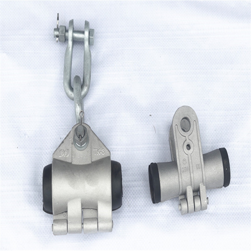 作为光缆用耐张线夹,悬垂线夹的安全备份部分,由一套机械张力系统组成,即一套预绞丝式耐张线夹,一套补修接续条,一段铝包钢绞线填充条,一套结构加固条,一套心形环和一套U型挂环组成。