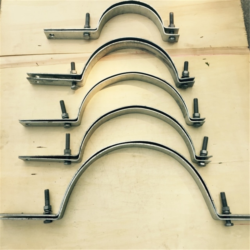抱箍(拉线抱箍、吊线抱箍)是用一种材料抱住或箍住另外一种材料的构件.?它属于紧固件.抱箍装置由箍板、翼板、拉结筋板、螺栓及内衬垫构成。?抱箍有好多种,电线杆抱箍,拉线抱箍,吊线抱箍不锈钢抱箍都是比较常用的