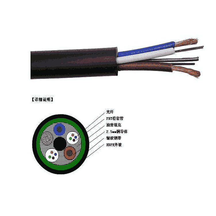 光电复合缆适用于宽带接入网系统中作传输线,是一种新型的接入方式,它集光纤、输电铜线于一体,可以解决宽带接入、设备用电、信号传输的问题。阳泉市光电混合缆生产厂家 rvv2*1.5加6芯单模光缆