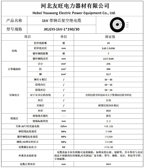 四、JKLGYJ-240/30国标生产厂家直供产品参数及样本图片: