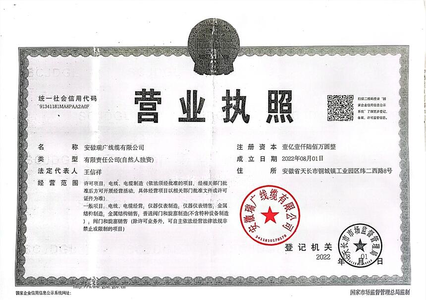 公司名称:安徽瑞广线缆有限公司