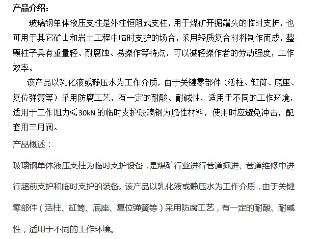 名称 | 临时支护用单体液压支柱 | ||
