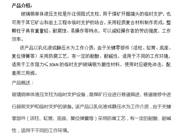 临时支护用单体液压支柱DW35-30/100B-玻璃钢支柱 品牌 | 国煤 | ||