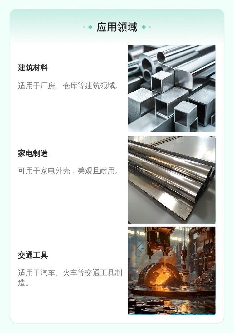 用途 | 建筑、家电、交通工具等多个领域 | ||