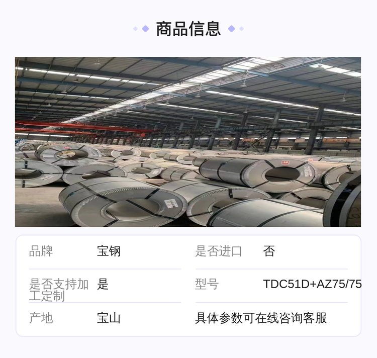 镀铝锌光卷安徽宝钢镀铝锌板 TDC51D AZ75/75镀铝锌卷 品牌 | 宝钢 | ||