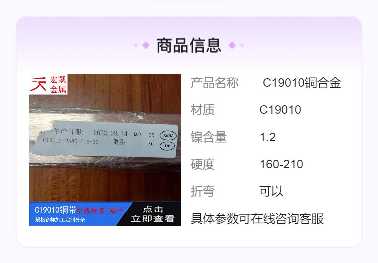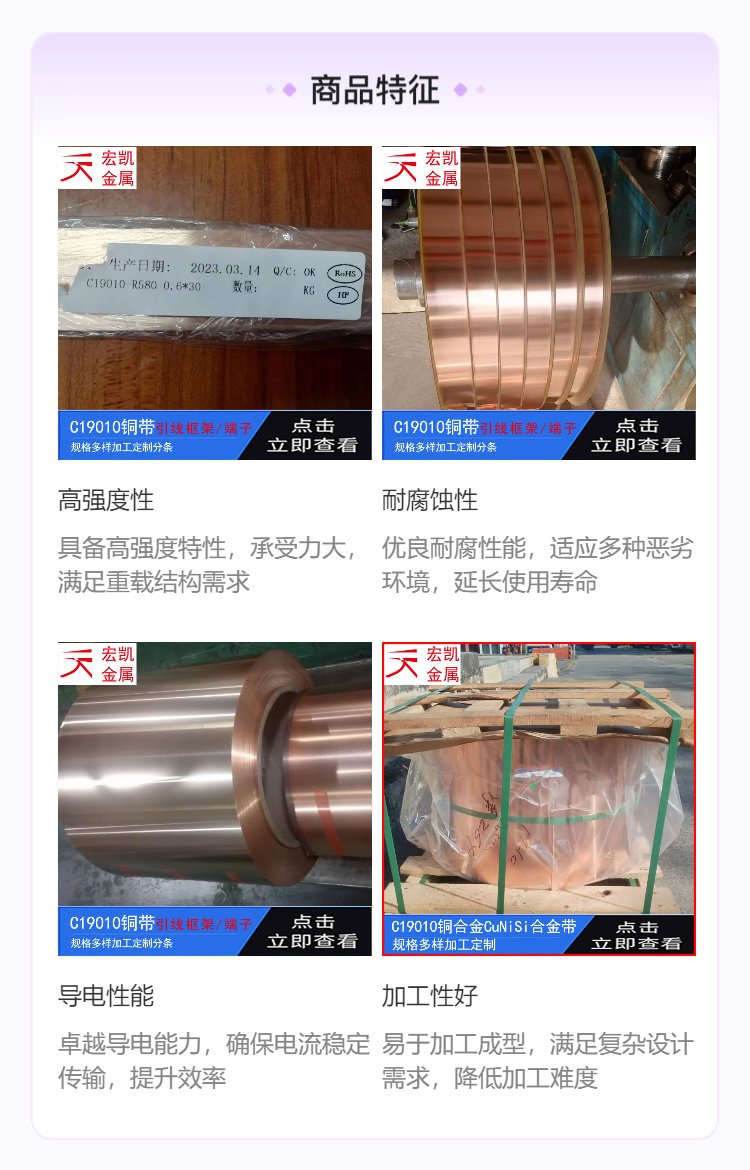 C19010铜合金C19010-R580/R480高强高导铜镍硅铜带新能源材料 品牌 | 深圳市宏凯金属 | ||