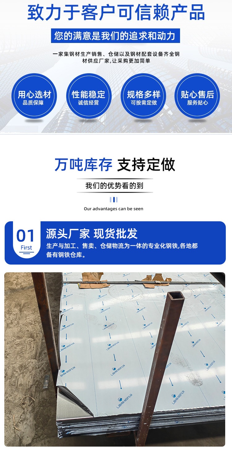 福瑞达可覆膜拉丝不锈钢板规格齐全可折弯焊接