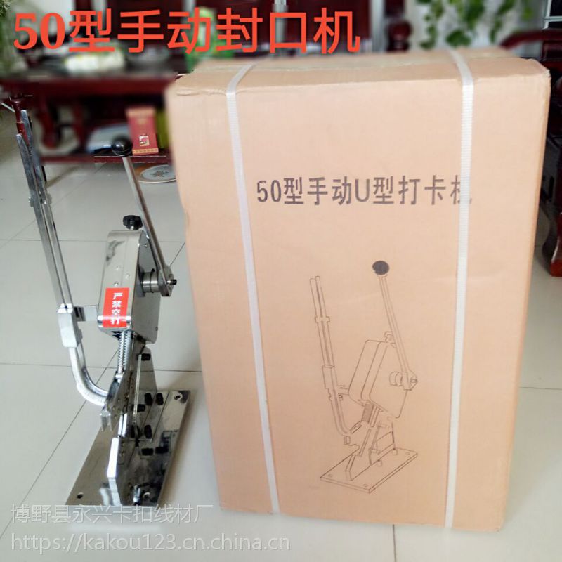 本机体积小,重量轻,实用性强,可用501、502、503型卡扣,密封松紧度可调,省工省力,可提高效率20%-30%,用于超市购物袋专业封口包装,密封性强,可有效降低人力。同时也用于水果行业中的蜜柚、龙眼、爆米花、大蒜、土豆、包装封口,也可用于菌菇袋封口,保证菌袋在室温状态不漏气,加温不涨袋。u50型打卡机体积小、重量轻,打卡快捷。也可用于锚固剂、硅胶、超市、纺织食品等行业广泛运用