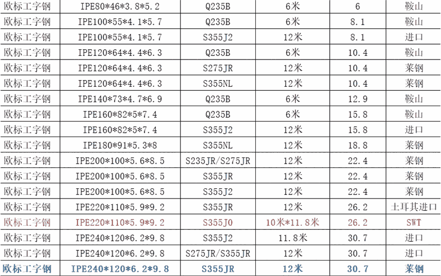进口欧标IPN工字钢与国产IPE欧标工字钢区别