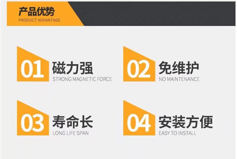 1、冶金工业:磁铁矿的块矿选别,有色矿石中选除铁杂、钢渣、灰渣选铁等。