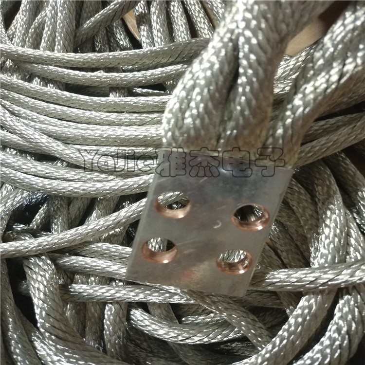 铜绞线软连接是用绞线作导体、两端选用铜管、铜管表面镀锡处置、接头标准按客户需要生产、在通过一起处理‘做成软连接、软接地、导电率高、抗疲劳能力强、首要使用于各种高压电器、通信设备、真空电器、矿用防爆开关及汽车等相关产品做软连接用、为解决常规冷捆绑加工制作方法带来的质量风险、可做电路原件中多方位摇摆及往复带电运动的导电装置.