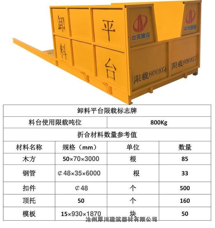 9. 为保险起见,卸料平台应挂上明显的限载牌,限载要求为1.0T。