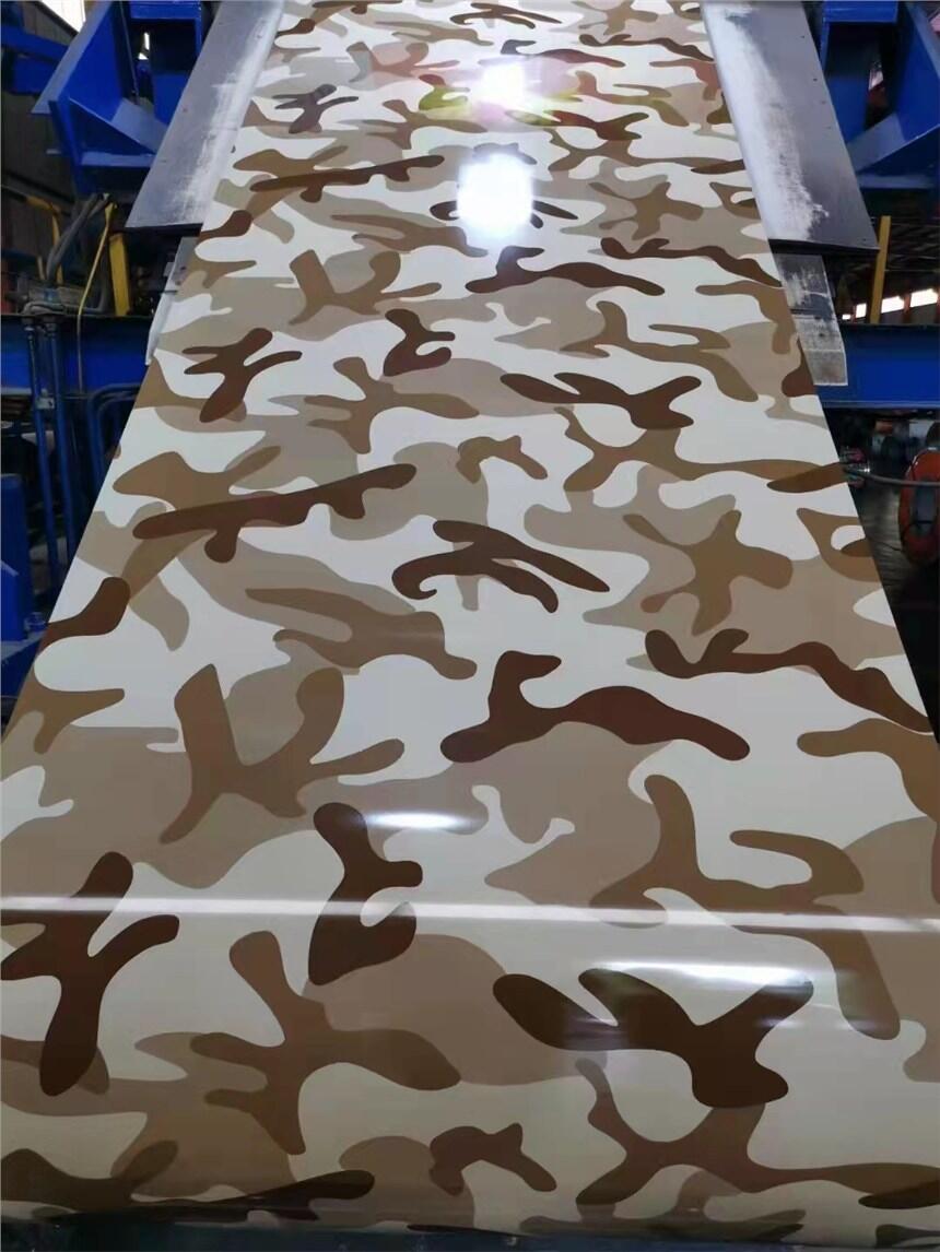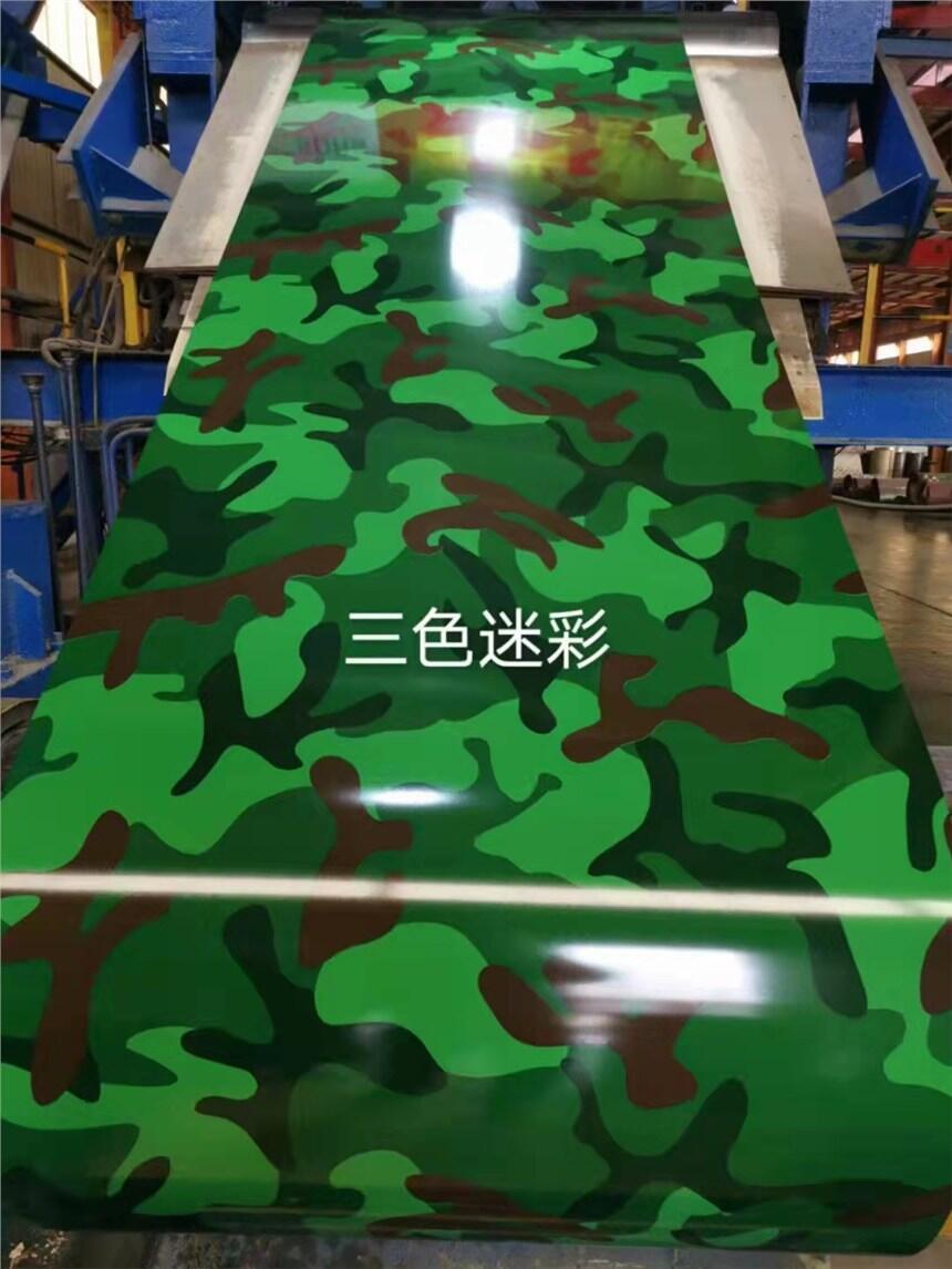 三色迷彩印花彩涂卷,规格0.5*1200mm, 漆膜15u , 背漆:7-9u, 花色清晰,色泽逼真,规格可以定做。山东温特板业有限公司同时提供各种木纹印花彩钢卷,纳米隔热板,彩涂卷,彩铝卷,纵剪分条钢带,窄带,钢带,压型瓦等多种钢制品。欢迎新老客户来电来人洽谈业务。