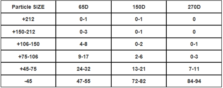 2.粒度:65D、150D、270D、70目 ?100目、200目、325目等等
