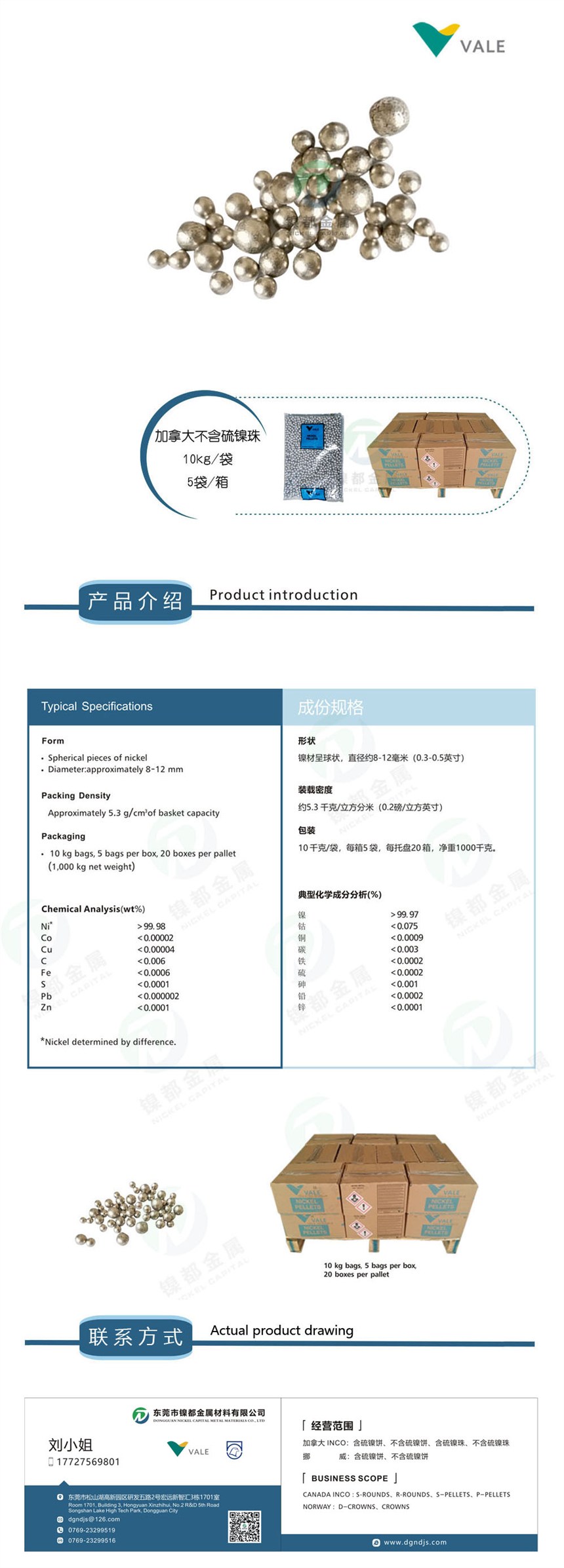 不含硫镍珠 英可不含硫镍珠,INCO不含硫镍珠,加拿大镍珠,英可镍球 |
