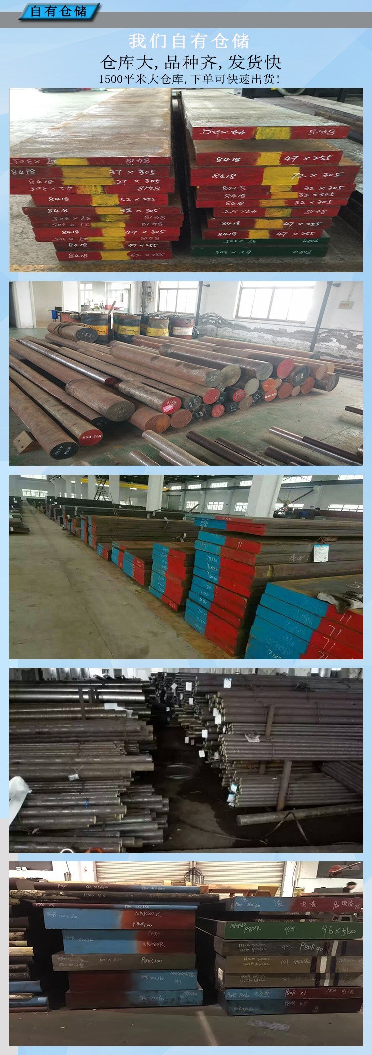 主要经营优特钢(10#、20#、45#、 20Cr、40Cr、可按ISO、ANSI、JIS、DIN、GB等.圆钢材质有:40CrNiMoA、20CrNiMoA、8620H、20CrNi2Mo 、20CrMnMo 、40CrMnMo 、30crmo、Q355、15CrMo 、20CrMo 、35CrMo 、42CrMo 、4140、4130、SAE8620、45CrNiMoVA、16MnCr5(15CrMn)、38CrMoAlA、20MnCr5(20CrMn) 、18Cr2Ni4WA 、12CrNi3、20Cr2Ni4A 、35CrMnSiA、30CrMnSiA 、18CrNi3Mo、25Cr2MoV、20CrMo、22CrMoH、20CrMnMo、20-30CrMnTi、25CrNiMoV、20CrNiMo、G20CrNiMo、G20CrNi2Mo、30Cr2Ni2Mo、17Cr2Ni2Mo、17CrNiMo6、18CrNiMo7、34CrNiMo6、30CrNiMo8、40CrNiMoA、45CrNiMoVA、40-45CrNi、20Ni4Mo、30CrMnSiA、35CrMnSiA、20-30CrMnSiNi2A、38CrSi、34CrNi1Mo、12CrNi3A、20CrNi3A、30CrNi3A、34-37CrNi3A、34-37CrNi3MoA、PCrNiMoA、PCrNi3MoA、12Cr2Ni4A、20Cr2Ni4A、18-25Cr2Ni4W、25Cr2MoV、25Cr2Mo1V、12CrMo、12Cr1MoV、12Cr1Mo1V、15CrMo、12Cr2Mo1、10CrMo910、12Cr2MoWVTiB、35CrMoV、45Cr2MoV、P11、18CrNi3MoA、20CrNi3MoA、25CrNi3MoA、FF710、22SiMnCrNi2MoVA、5CrW2Si.