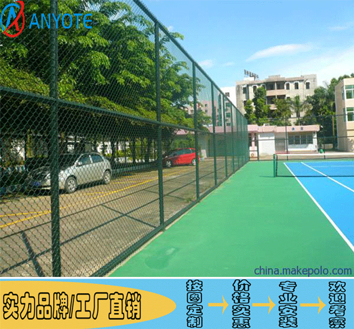 球场护栏网体育场的应用原则和实例,网球场镀锌勾花网系统经济提供保护与的网球场。网球场两侧围网的高度为3米,两端4米。场地若临居民区或马路,其高度均匀为4米以上,另外在网球场的边侧为了使观众看比赛容易,可设H=0.80米的围网。屋顶网球场的挡网高度为6米以上。