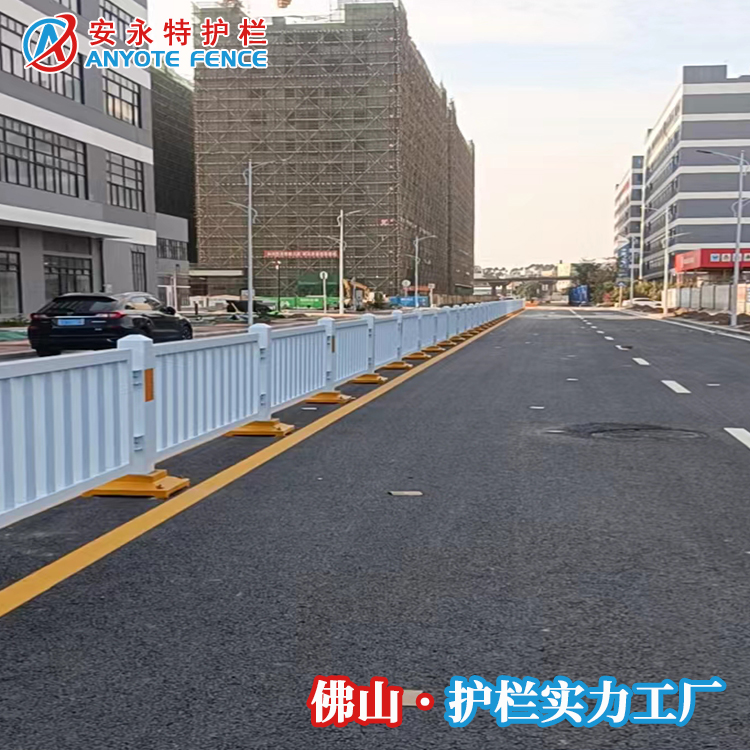 深标3型材料材质为Q235碳素钢,材料有80*80方管、100*68工字钢、100*48槽钢,150*150方管,护栏片与立柱连接为M12*50六角螺栓,在端头、双向迎车面根据需要可贴上黄反光膜,每6米一块反光膜。根据安装方式,如需要底座固定的,一般为铸铁底座450*450*150mm,底座重量35kg每个。