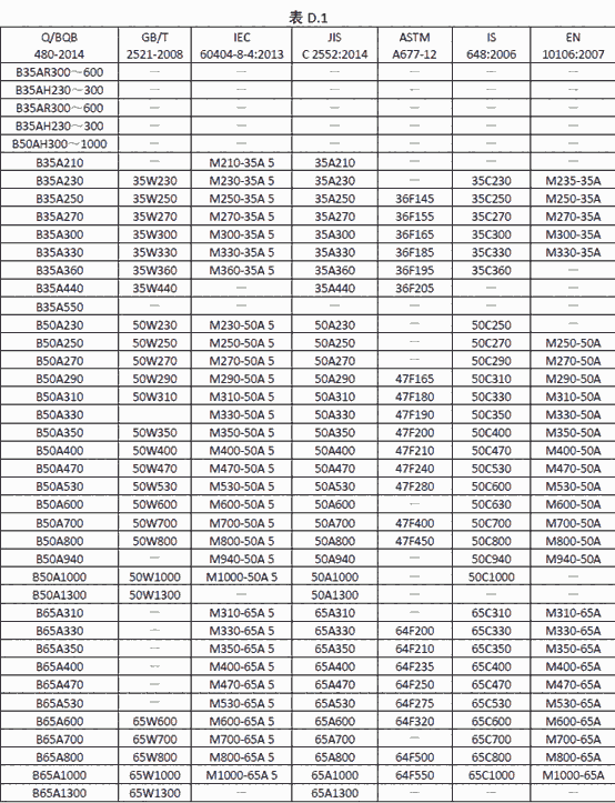B35AH230 表示公称厚度为0.35mm 的高磁感型无取向电工钢,铁损的保证值P15/50 不大于