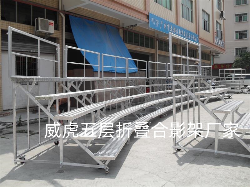 威虎舞台专业生产铝合金折叠合唱台,合唱台多用于人多,集合度较高的场合,例如,合唱,合影等。踏步可木板加地毯.贴面木板加包边.铝合金板面,踏步有三层.四层.五层.六层可选,有带脚轮和不带脚轮。单个基本宽度1.2米、1.5米、1.6米,1.8米,单个最宽为2米,可以多个组合。长宽高可根据客户的需求来订做,需要多少层就可做多少层,结构牢固,价格适中,外观精美,深受消费者的认同。折叠式合唱台架,轻便牢固,台面为铝合金板面(防滑), 台支撑铝合金结构,带脚轮方便移动,台阶底部加装防磨固垫,保护台阶的同时增加安全系数。配件大量采用低碳钢精密铸造件与合金钢热处理件。受力螺栓均为高强度合金螺栓。合唱台的靠栏可拆装.踏步可折叠起来,节省90%空间,易存储,运输方便。广泛用于学校、单位、文艺演出、集体照相、少年宫、各大企业事业单位。