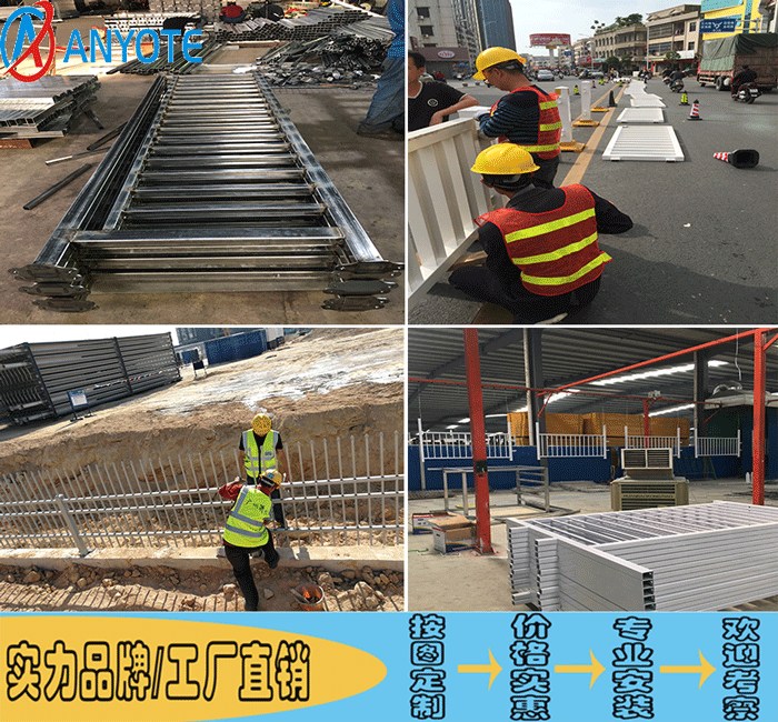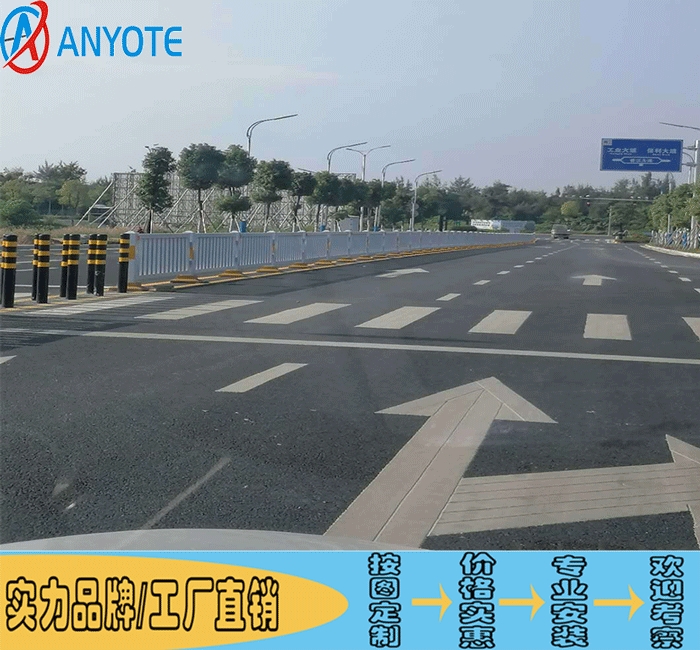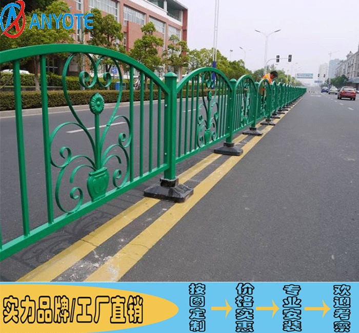 市政铁艺护栏特点:具有轻盈、美观、实用;网片与网柱连接十分紧凑,整体感好;隔离性能好,底座使用水泥墩