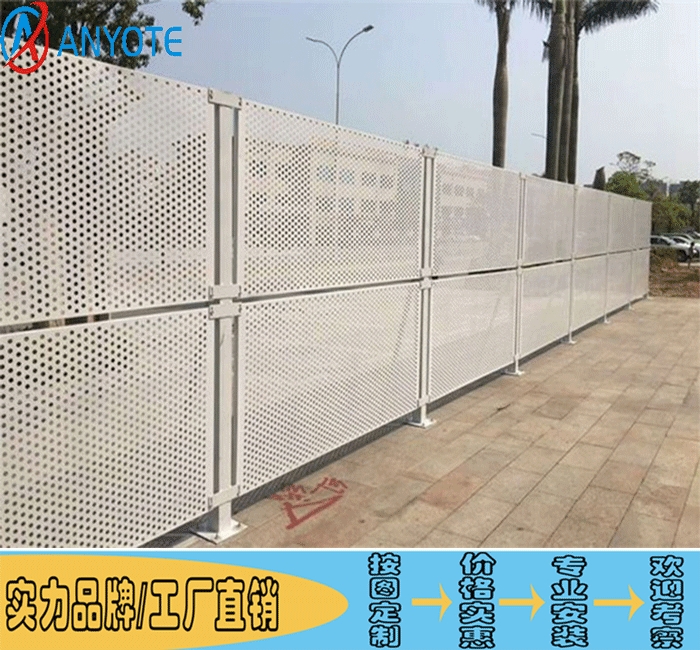 冲孔围挡是以镀锌材质为主要材料的一种穿孔板,通过采用不同大小的网孔,排列方式,表面处理,可以制成不同款式的施工建筑抗风冲孔围挡。