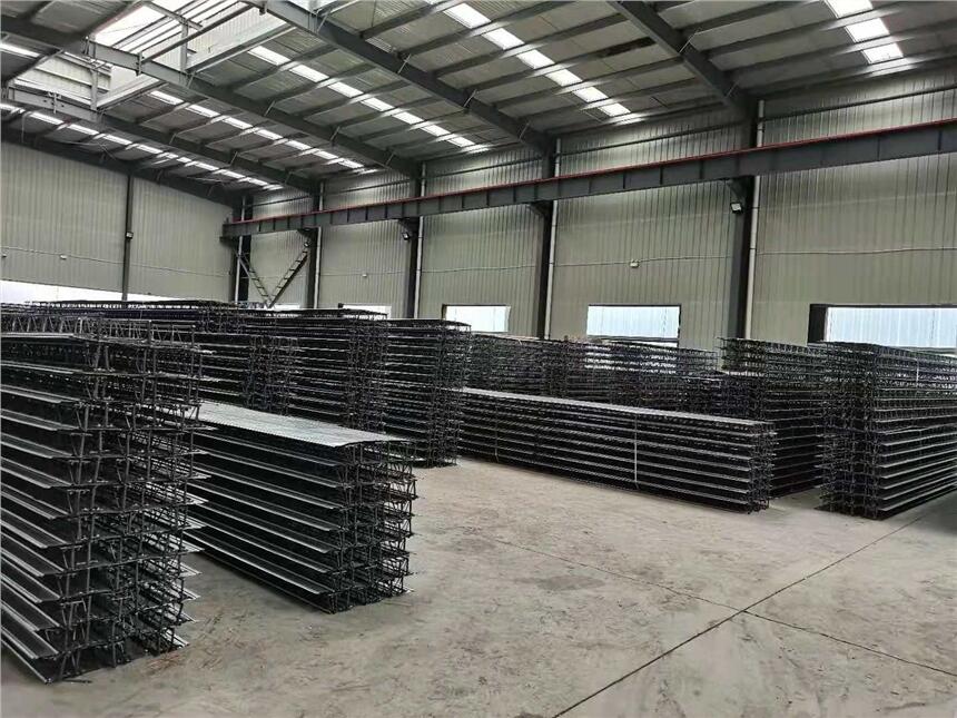 ? ? ? 我公司生产的钢筋桁架楼层板,是由一根上弦钢筋,2根下弦钢筋,2根腹杆钢筋,通过钢筋桁架楼层板生产设备,自动成型,自动焊接,自动剪切,加工成桁架筋。再把桁架筋通过高频电阻焊接在加工好的镀锌板上,使桁架筋和镀锌板成为一体的钢筋桁架楼层板。这种模板的作用就是把混凝土楼板里面的钢筋跟施工模板组合,形成一个在施工阶段能够承受湿混凝土自重的承重机构。钢筋桁架楼承板替代了大量的木模板、钢管脚手架支撑,减少了对环境资源的浪费。由于钢筋桁架模板采用自动化加工设备与制造工艺,实现了标准化、工厂化大规模生产,具有焊接质量稳定、钢筋分布均匀及产品尺寸准确等优势;采用机械化、工业化安装,改变了工人施工条件,有效确保施工质量。