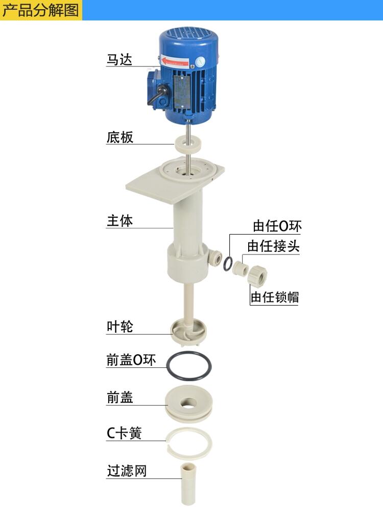 产品规格:(50Hz) 电机功率:50-120 W 全流量:50-70 L/min 全扬程:3-3.8 m 主要材质:FRPP,PVDF 适合温度:0~75℃(FRPP),0~90℃(PVDF)