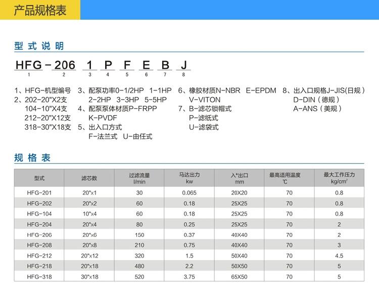 全过滤量:30-520 L/min 主要材质:GFRPP 耐温范围:0~75℃ 滤芯支数:10”×4支,20”×(1-18)支,30”×18支 是一家集开发、生产、销售、服务于一体的综合性泵浦生产企业。